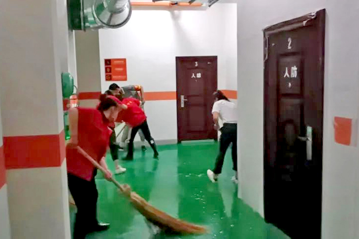 對積水處進行緊急清理